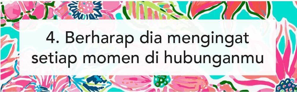 Dalam menjalani hubungan, memang akan ada momen-momen yang spesial untuk diingat. Kalau kamu selalu mengingat setiap momen yang kamu jalani dengan pasangan, mungkin nggak dengan pasanganmu. Kamu nggak bisa berekspektasi untuk pasangan kamu selalu mengingat setiap momen yang kamu jalani berdua. Kalau kamu selalu berharap seperti itu, kamu hanya akan menerima kekecewaan ketika pasangan kamu nggak mengingatnya.