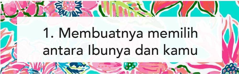 Bagaimanapun rasa tanggung jawab seorang laki-laki adalah ketika dia juga mengurus sang ibu. Posisi kamu dan sang ibu akan berbeda di hati seorang anak laki-laki. Daripada sibuk untuk membuatnya memilih, sebaiknya kamu juga memperlakukan mertuamu seperti orangtuamu juga. Bersikap baik dan menjalani hubungan yang harmonis agar kamu juga selalu dapat dukungan.