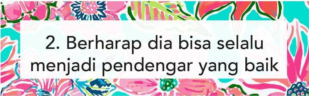 Perempuan sangat senang untuk bercerita. Apalagi kalau menceritakan kesehariannya kepada sang pasangan. Kalau kamu tipe orang yang sering bercerita segala hal pada pasangan. Kamu harus siap ketika suamimu memang sedang nggak selalu bisa meresponsmu sesuai ekspektasi. Karena bisa saja seseorang dalam keadaan yang sedang nggak mood. Kamu juga harus tahu dan peka kapan kamu bisa bercerita dan direspons dengan baik oleh pasangan.