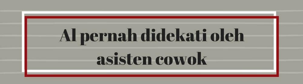 Kalau kamu masih ingat, pada bulan April lalu Al pernah didekati oleh seorang asisten cowok. Kadang, orientasi seksual seseorang nggak selalu bisa dilihat dari penampilannya. Dianggap sebagai cowok normal, asisten tersebut justru memanfaatkan kesempatan ketika dia dan Al tidur bersama. Untungnya Al langsung ambil tindakan cepat.