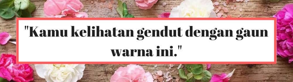 Wanita mana yang nggak tersinggung ketika mendengar omongan tentang bentuk tubuhnya? Segala sesuatu yang berhubungan dengan berat badan dan bentuk tubuh adalah hal super sensitif, apalagi mereka sedang menjadi ratu di pesta pernikahannya. Jadi, kenapa nggak kamu simpan saja kalimat tersebut di kepalamu?