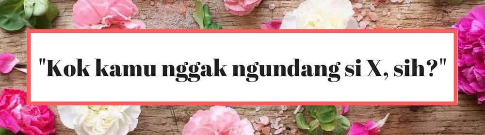 Boleh saja kamu heran karena nggak mendapati temanmu yang lain hadir di pesta pernikahan sahabatmu itu. Tapi, daripada menanyakannya langsung kepada pengantin, lebih baik kamu tutup mulut saja. Mengundang merupakan hak si pemilik acara, pastilah mereka punya pertimbangan tersendiri.