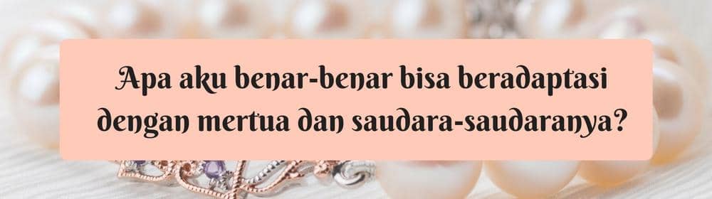 Menikah, berarti kamu akan mendapatkan keluarga baru. Sepasang orangtua, dan juga kakak/adik dari suamimu nanti. Jawablah pertanyaan ini dengan berdoa, mintalah petunjuk dan diberi kemudahan hingga akad dan setelahnya. Mengomunikasikan perasaanmu kepada orangtua pun tak ada salahnya.