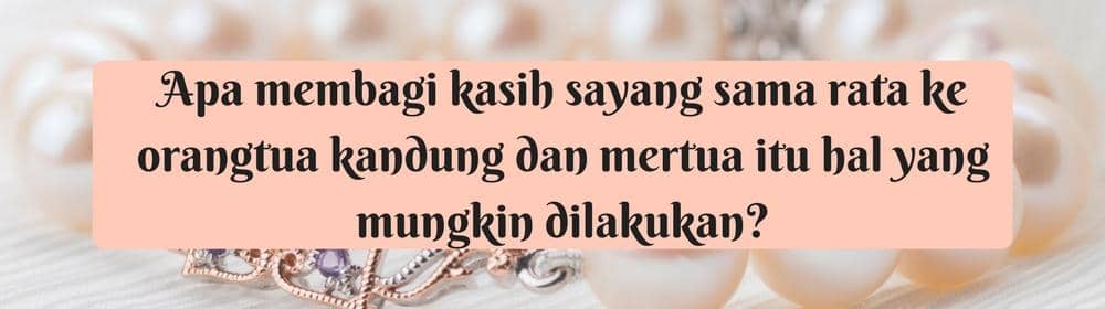 Sayangnya, untuk hal ini memang tak ada ukurannya. Kamu hanya perlu menyayangi keduanya, itu saja. Jangan sampai berat sebelah, jangan terlalu menganggap ibu kandung lebih dari segalanya karena ibu mertua juga ibu dari suami yang sudah menjadi ibu kamu juga.
