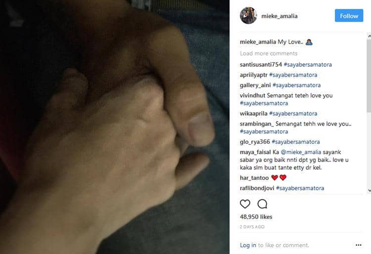 Mungkin hanya lewat akun media sosial, Mieke bisa mencurahkan perasaan dan dukungan penuh kepada sang suami. Sejak hari di mana Tora ditangkap, Mieke kerap mengunggah momen-momen berkesan beserta caption yang menyentuh.