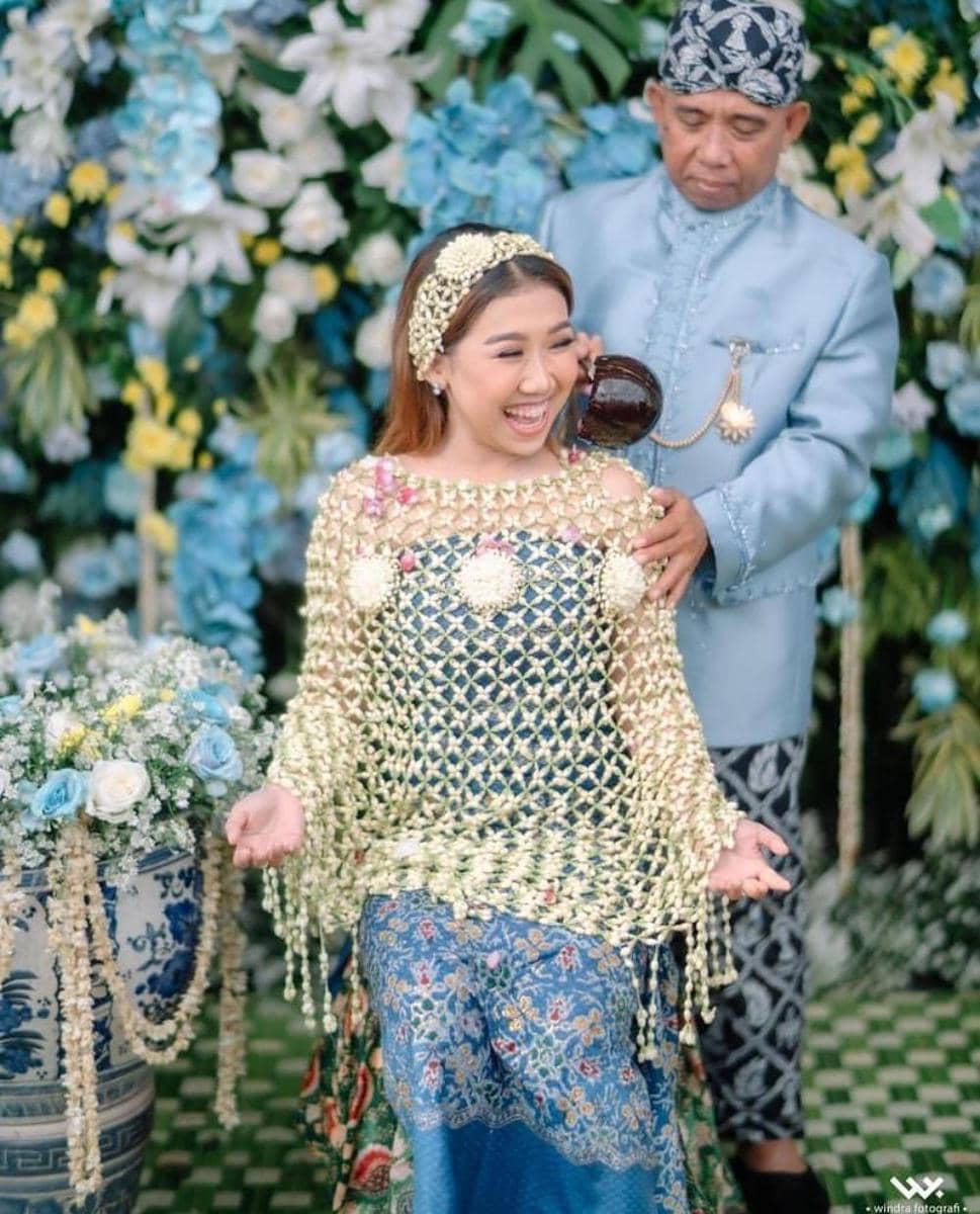 8. Inilah salah satu momen acara siramannya, Kiky tampak begitu ceria, ya!
