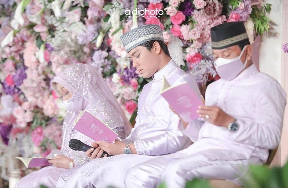 3. Di momen sakral itu, Lesti tampil anggun dalam balutan gaun berwarna ungu muda karya Ayu Dyah Andari.