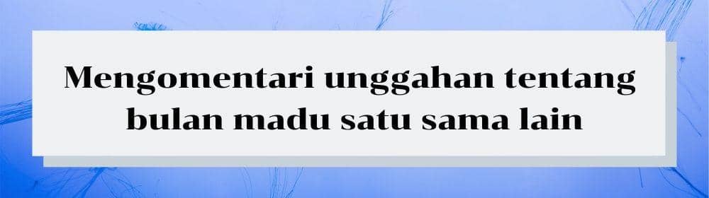Bukannya fokus pada momen bulan madu, baik kamu dan pasangan malah asyik bermain media sosial. Meski yang kalian lakukan adalah menunjukkan momen kebersamaan bulan madu kepada para followers dengan saling berbalas komentar dan emoji, namun sebaiknya itu tidak perlu dilakukan. Sejujurnya, teman-temanmu di media sosial juga tidak menginginkannya.