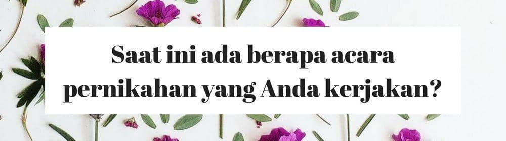 Pertanyaan ini harus diajukan pertama kali kepada calon WO untuk melihat seberapa sibuk WO itu dalam mempersiapkan pernikahan dalam satu bulan. Jika mereka terlalu banyak menangani acara resepsi, kamu bisa mempertimbangkan kembali karena ini akan berpengaruh pada konsentrasi mereka dalam menyelenggarakan pesta pernikahan.