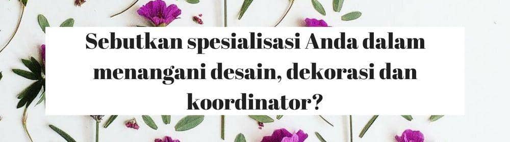 Pertanyaan ini diajukan dengan tujuan untuk mencari tahu di mana letak keunggulan WO tersebut. Kalau jawaban yang kamu butuhkan hanya perlu koordinator, mungkin nggak perlu sampai repot untuk mencarinya. Tetapi jika yang kamu inginkan adalah WO yang bisa mengerjakan dekorasi dan dan koordinasi, kamu harus benar-benar meneliti kompetensi mereka dalam menangani suatu acara resepsi pernikahan.