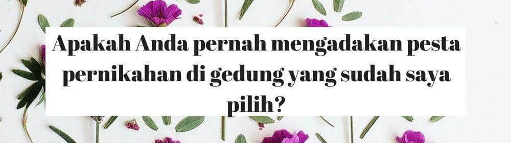 Tujuan mengajukan pertanyaan ini adalah untuk melihat apakah WO itu sudah nggak asing dengan tempat pernikahan yang kamu pilih. Bila mereka sudah hafal seluk beluk tempat pernikahan tersebut, akan sangat memudahkan mereka sendiri. Sebaliknya bila belum hafal dengan tempat tersebut kamu bisa mempertimbangkan kembali.