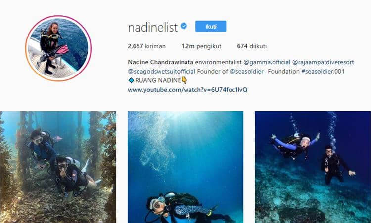 8. Dilihat dari bio Instagram-nya, Nadine lebih senang disebut sebagai environmentalist ketimbang artis.
