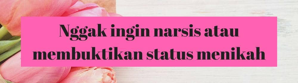 Jika seorang suami telah menikah dan tahu telah menikah, maka nggak perlu laki-laki itu mematut diri karena telah menikah. Bagi pria yang nggak memakai cincin kawin di hari-hari biasa, bukan karena nggak peduli dengan pernikahannya. Belum tentu pria yang selalu memakai cincin kawin sehat dalam pernikahannya.