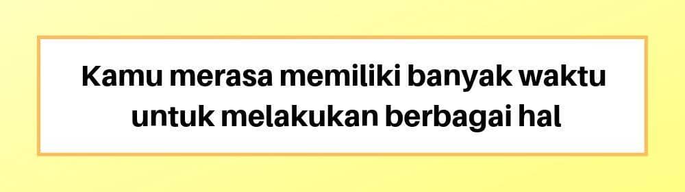 Bagimu, dunia ini luas dan masih ada banyak hal yang harus kamu lakukan untuk menjelajahinya. Memiliki anak tentu akan menambah beban dan menyita banyak waktu. Karena itulah, kamu merasa nyaman dengan keadaan sekarang dan mampu terus mengasah passion yang kamu miliki.
