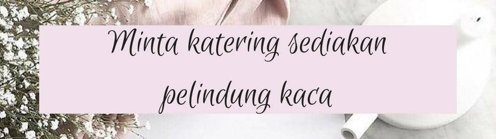 Baik dalam ruangan, apalagi di luar ruangan, serangan nyamuk bisa datang dan hinggap di makananmu. Untuk mencegah ini terjadi, minta pada pihak katering untuk menyediakan penutup wadah berbahan kaca transparan. Meski tertutup, para tamu tetap bisa melihat ketersediaan makanan tanpa harus bolak-balik membuka tutupnya. Plus, pelindung kaca ini juga bisa jadi dekorasi meja yang indah.