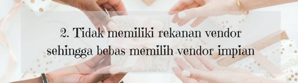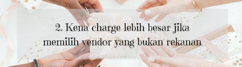 Jika kamu ingin memilih vendor dari luar yang bukan rekanan dengan gedung yang kamu sewa, kamu harus membayar biaya tambahan yang lumayan besar. Dengan kata lain, sebenarnya kamu setengah “dipaksa” untuk menggunakan jasa dari vendor rekanan gedung serbaguna tersebut.