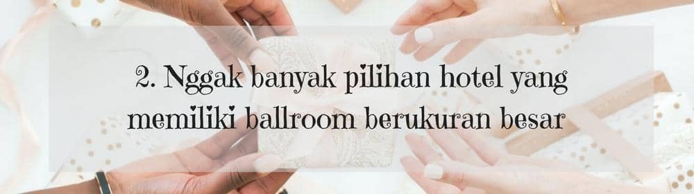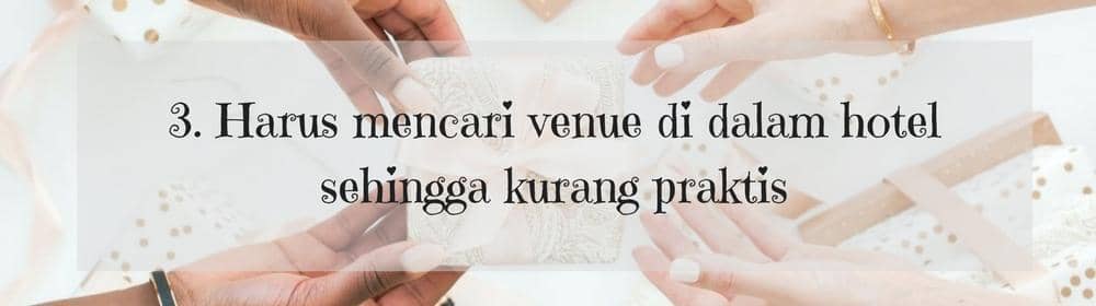 Rupanya, banyak juga poin plus yang kamu dapatkan jika kamu memilih mengadakan pesta di hotel. Namun, tentu saja kamu harus memikirkan budget jika memilih hotel sebagai tempat pestamu. Karena menyewa sebuah ballroom di hotel itu nggak murah, Bela! Selain poin plus yang kamu dapatkan, ada juga beberapa poin minus jika kamu dan pasanganmu ingin mengadakan pesta di hotel.
