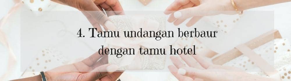Sudah bisa dipastikan tamu undanganmu akan bertemu dengan para tamu hotel yang lain. Mungkin untuk sebagian orang hal ini membuat tidak nyaman.