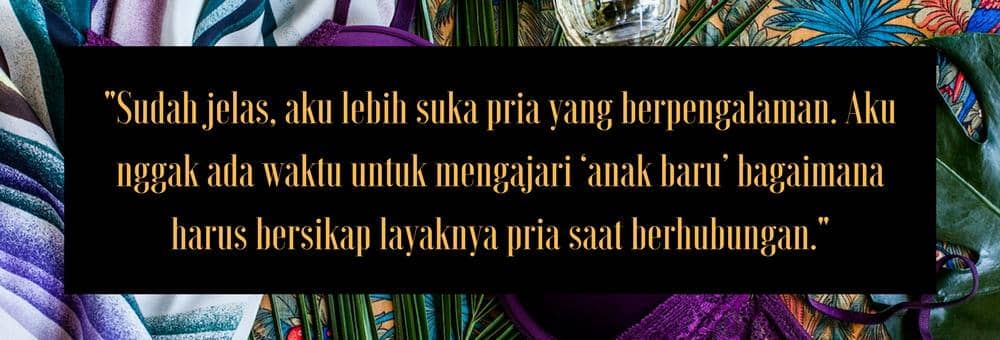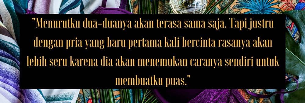 Bicara tentang urusan ranjang, tentunya kamu menginginkan pasangan yang tahu bagaimana memuaskanmu hingga titik puncak. Kepuasan saat bercinta faktanya bukan tentang ukuran Mr. P, tapi tentang perlakuan yang dia berikan. Sebagian wanita lebih suka dengan pria yang sudah berpengalaman, tapi ada juga yang menyukai first timer atau pria yang belum pernah bercinta. Apa bedanya? Psst... simak pengakuan mereka.