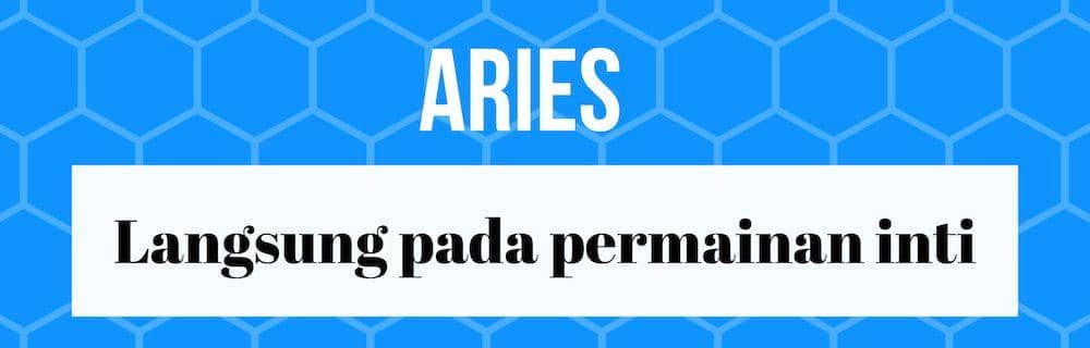 Pemilik zodiak Aries menyukai seks yang to the point. Daripada meghabiskan waktu untuk foreplay, Aries lebih suka untuk langsung menghadapi permainan inti. Ritme bercinta seperti ini boleh jadi disebabkan sikap nggak sabar yang kamu miliki. Namun, itu bisa jadi passsion-mu terhadap seks. Karena itu, coba posisi standing sex. Gaya ini cocok untuk kamu nggak bisa sabar menunggu.