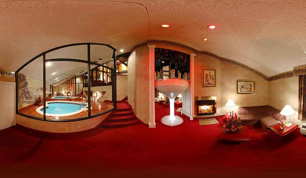 Nggak hanya dilengkapi dengan kolam renang dalam ruangan yang berbentuk hati, di kamar ini kamu juga bisa berendam mesra di dalam gelas sampanye raksasa. Terdapat 3 hotel yang menyediakan champagne tower dalam kamar, yaitu Cove Haven Resort, Pocona Palace dan Paradise Resort.