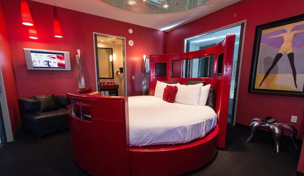 Seperti namanya, hotel yang satu ini sepertinya memang diciptakan khusus untuk mereka yang ingin memadu kasih, terutama letaknya yang berada di Las Vegas atau yang dikenal dengan julukan Sin City. Desain interiornya terinspirasi dari seting film dewasa era 80an. Nuansa merah dan hitam dan cermin yang dipajang di langit-langit menambah nuansa erotis di tempat ini.