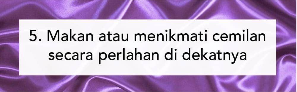 Selain membereskan hal-hal kecil, kamu juga bisa melakukan hal ini. Makan secara perlahan dan menikmatinya di dekat pasanganmu. Laki-laki senang memperhatikan hal-hal kecil. Kamu juga bisa meminum minumanmu di dekatnya. Lakukan juga dengan cara menggoda juga dengan slow motion.