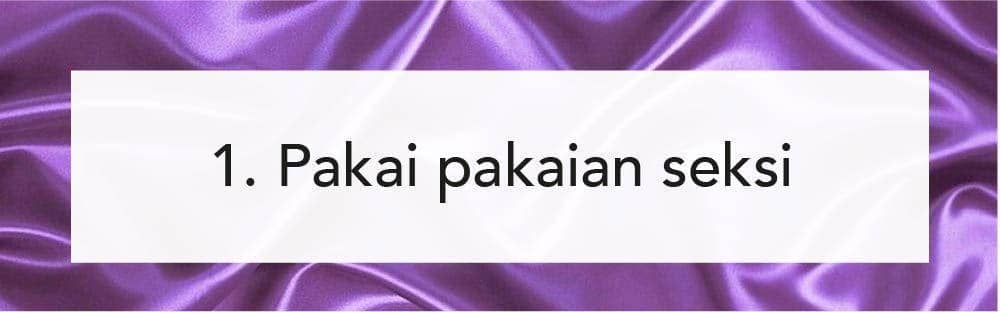 Saat kamu sudah bersama dengan pasangan, kamu bisa gunakan pakaian-pakaian dengan potongan seksi. Contohnya seperti kaos namun tetap memperlihatkan bahumu. Hindari langsung memakai pakaian dalam yang terlalu memperlihatkan banyak kulit tubuhmu. Biarkan pasanganmu menjadi sedikit penasaran dengan kulit mulusmu.