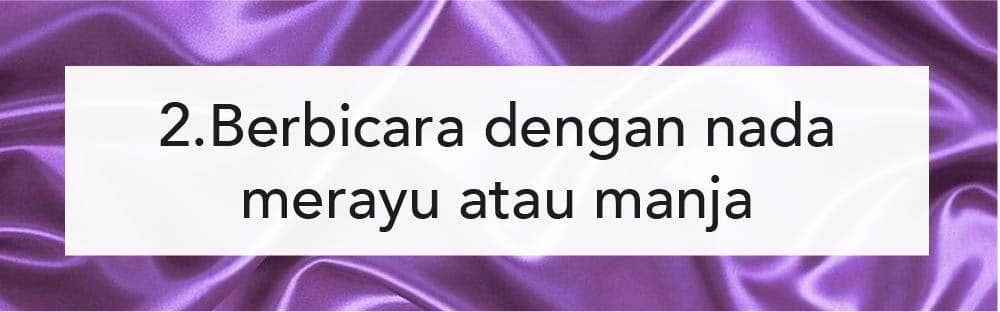 Saat kamu mulai pembicaraan dengan pasanganmu, kamu bisa mengeluarkan nada-nada yang manja dan merayu. Dijamin ia akan menyukainya. Atau kamu juga bisa melontarkan kata-kata untuk merayu pasanganmu dengan perlahan. Pasti dia akan merasa sensitif dengan suara perempuan.