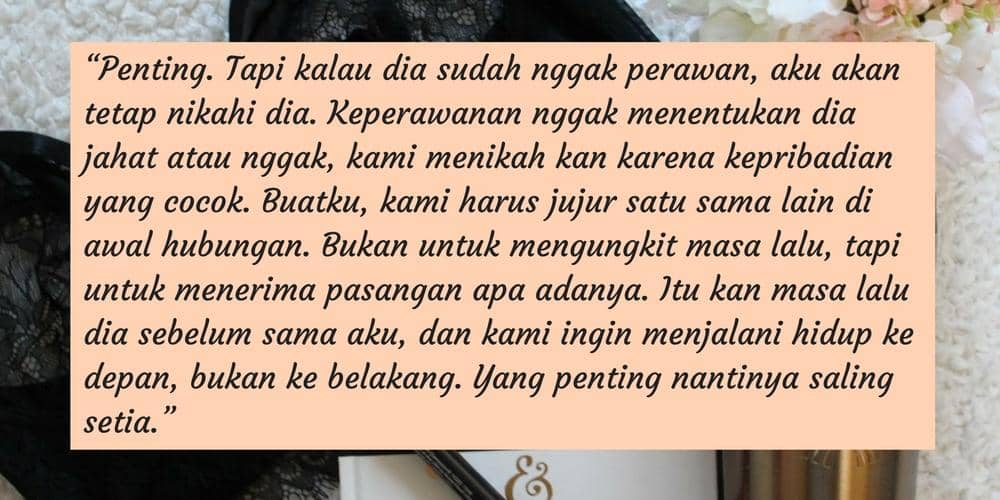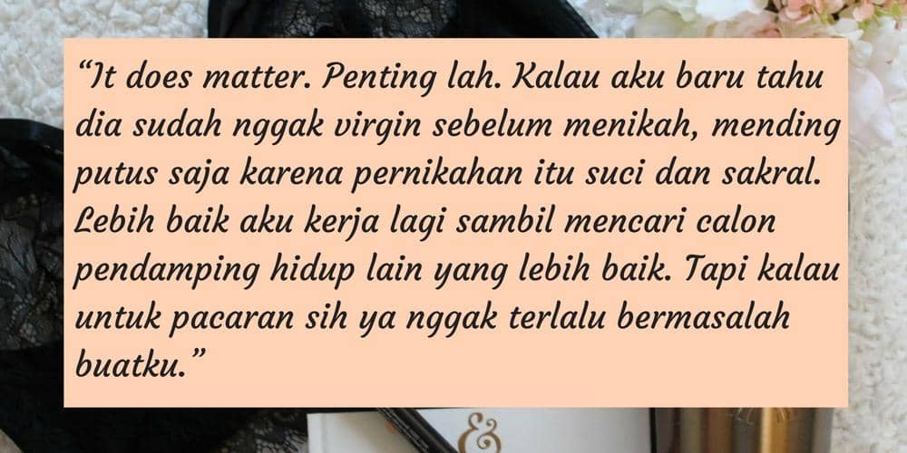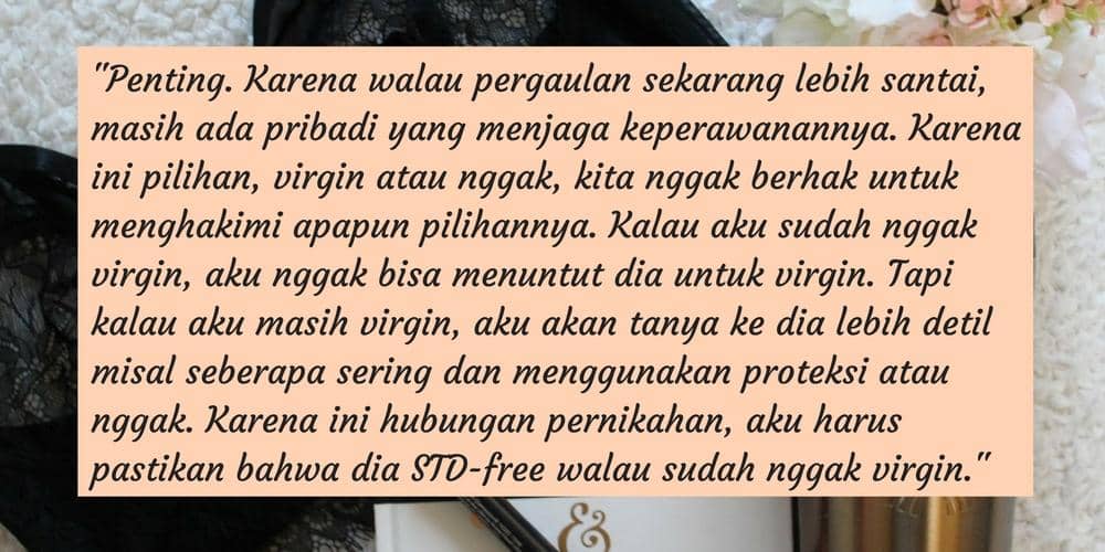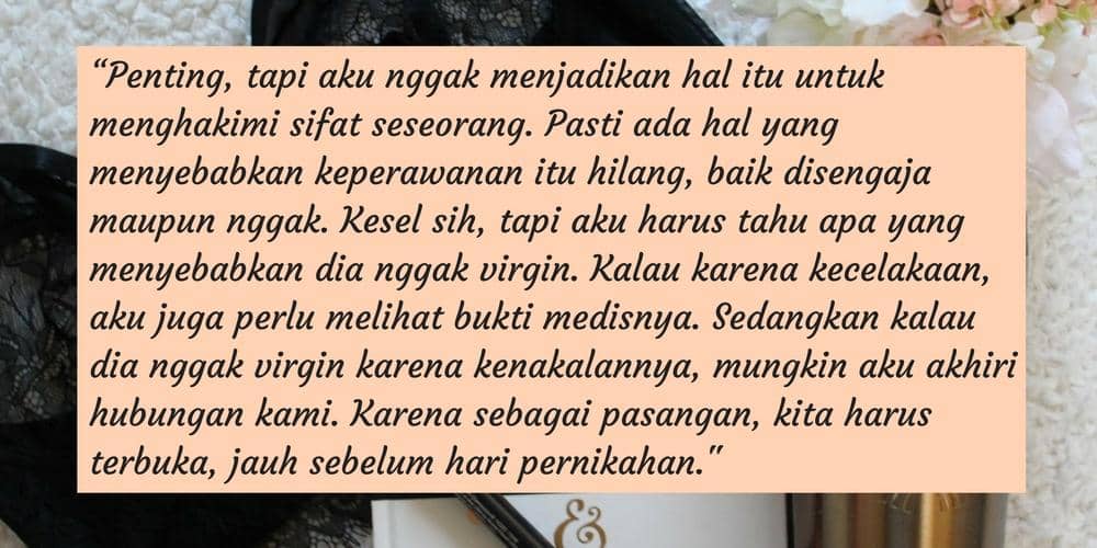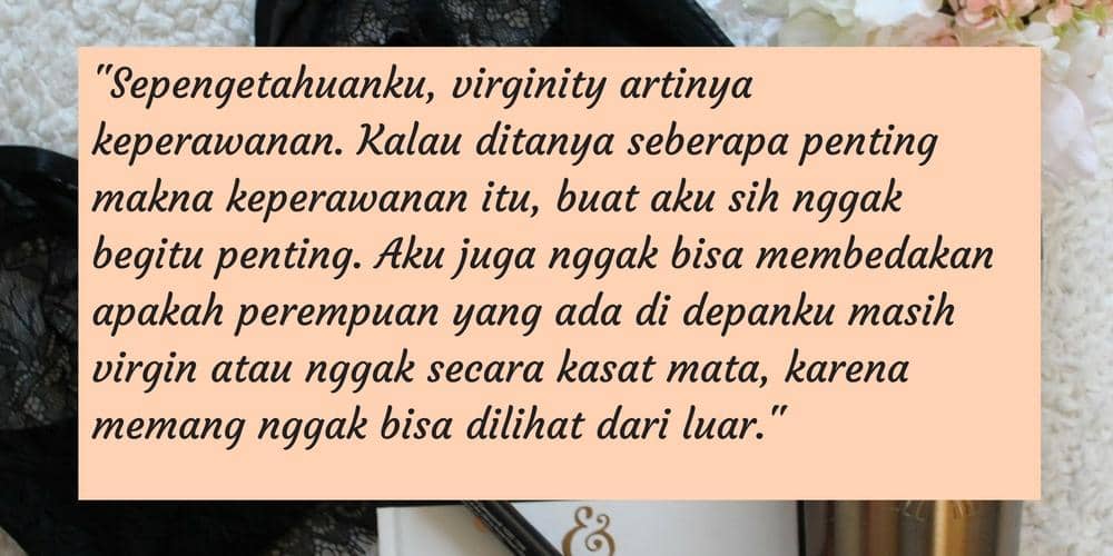 Keperawanan masih menjadi topik yang tabu untuk diperbincangkan di Indonesia. Di satu sisi, kita sebagai perempuan ingin mengetahui bagaimana pandangan laki-laki terhadap kesucian, di mana pergaulan yang ada di sekitar kita semakin longgar. Untuk menjawab rasa penasaran tersebut, Popbela telah melakukan wawancara dengan 10 laki-laki tentang makna sebuah keperawanan bagi mereka dan apa yang mereka lakukan ketika pasangannya sudah nggak perawan menjelang hari pernikahan. Apa kata mereka?