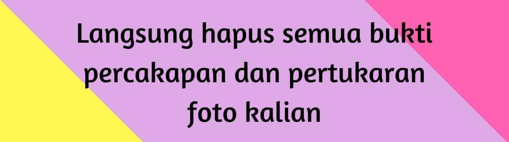 Popbela tahu, godaan menyimpan chat panas dengan pasangan itu besar sekali. Tapi jangan sekalipun melakukannya karena kamu tak akan tahu apa yang akan terjadi di kemudian hari. Untuk menghindari kemungkinannya menyebarkan isi percakapan kalian. minta dia untuk menunjukkan bukti melalui screenshot bahwa ia juga telah menghapus pesan-pesanmu.