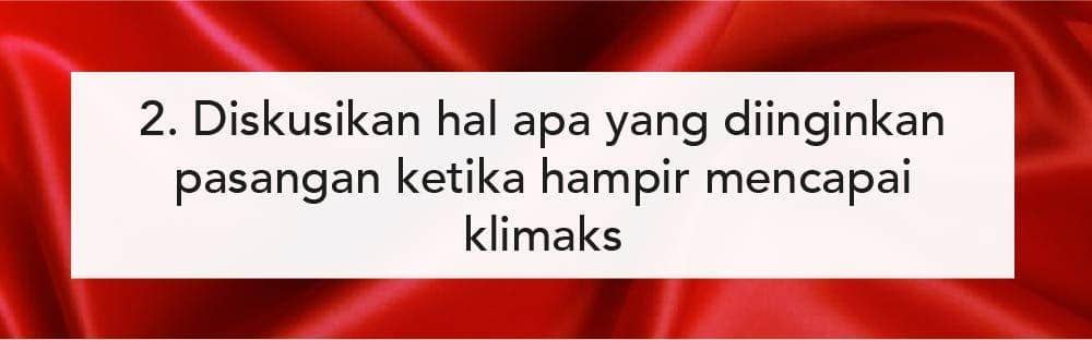 Berkomunikasi dengan pasangan memang penting, nggak cuma apa yang dia suka sebelum memulai, tapi dia juga bisa mengatakan apa yang dia inginkan kalau sudah hampir mencapai klimaks. Karena biasanya setiap laki-laki memiliki keinginan yang berbeda-beda saat dia mencapai kenikmatannya.