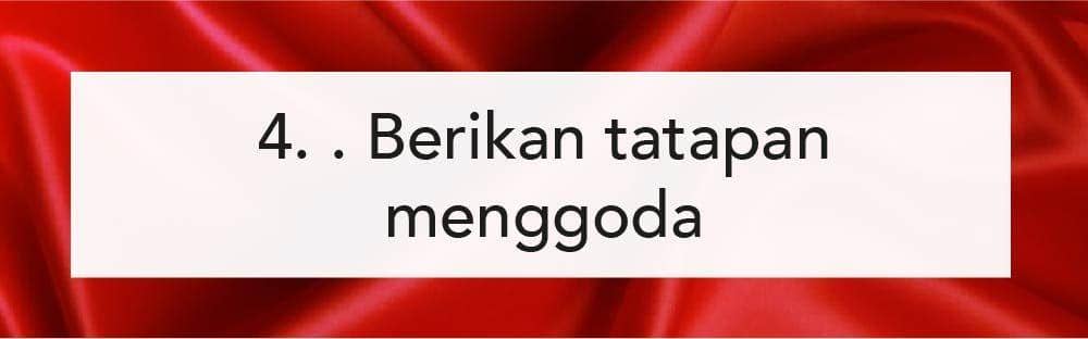 Ketika kamu sudah memulainya, kamu bisa sesekali menatap pasangan kamu untuk memberikan tatapan menggoda. Hal itu akan membuat pasangan menjadi semakin bergairah dan berfantasi saat melakukannya bersama kamu. Kalau kamu hanya memberikan posisi yang datar saja, hanya akan jadi hal yang membosankan ketika dilakukan bersama pasangan.