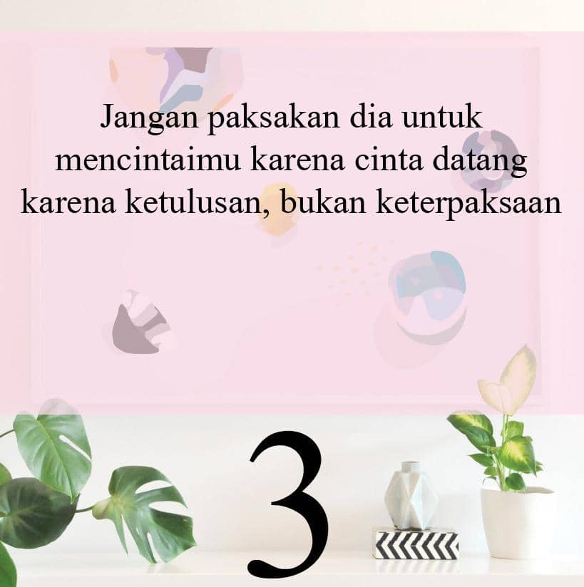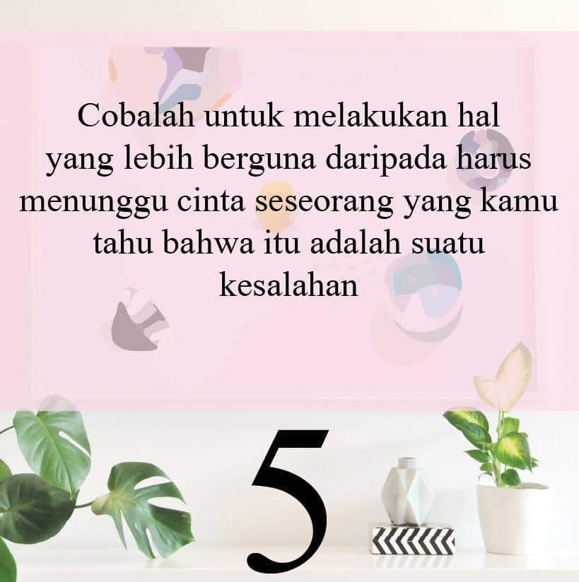 Dunia tidak selebar daun kelor, begitulah pepatah mengatakan. Sudah saatnya kamu melakukan hal yang lebih bermanfaat untuk kehidupanmu daripada harus menyiksa diri sendiri dengan cinta yang tidak berujung jelas arahnya. Memendam perasaan, tidak selamanya salah namun penyiksaan batin diri sendiri juga harus segera kamu tinggalkan karena disisi lain masih banyak hal yang harus kamu kejar dan capai. Ingatlah target hidupmu. Kehidupanmu bukan hanya untuk soal asmara, Jadilah dewasa sehingga kehidupanmu tidak lagi dipermainkan oleh cinta.