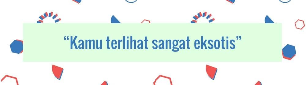 Sesekali, mungkin hanya terdengar sebagai pujian yang ‘eksotis’. Tetapi jika hanya ini yang ia lihat terus menerus, ia bisa jadi seorang yang rasis, Bela. Kamu nggak ingin dilihat berdasarkan rasmu, bukan? Semua orang seharusnya dianggap sama. Secara ras maupun jenis kelamin.