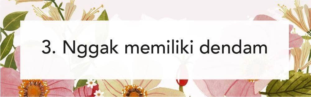 Tapi saat kamu memilih untuk berdamai dengan masa lalu kamu akan secara otomatis melepaskan dan menerima hal-hal buruk yang pernah menimpamu dan juga nggak menyimpan dendam.