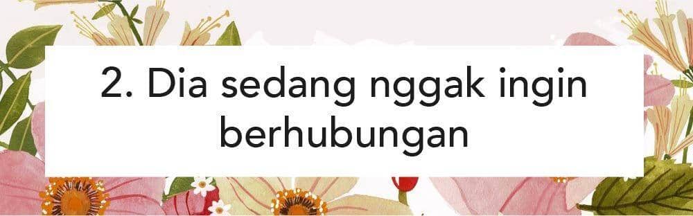 Saat kamu merasa sedang intens didekati oleh seseorang namun dia tiba-tiba hilang entah ke mana, bisa jadi salah satu alasannya adalah hal ini. Si dia menyadari kalau dia belum siap untuk menjalani hubungan baru bersama orang lain. Bisa juga hal ini karena dia masih merasa trauma, belum bisa move on, atau merasa memiliki pacar adalah suatu pemborosan. Apa saja bisa menjadi alasan seseorang untuk nggak dulu menjalani hubungan dengan orang spesial.