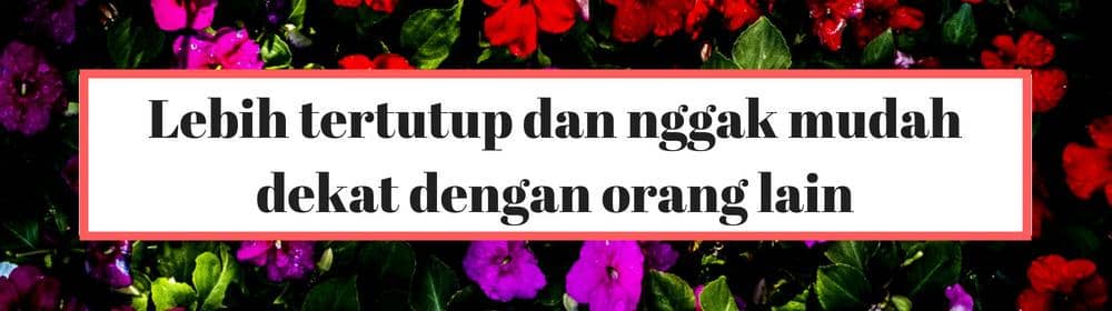 Kamu memiliki ketakutan berlebih untuk dikhianati dan dikecewakan. Karena rasa takut yang berasal dari dalam diri itulah, kamu jadi sangat selektif dalam memilih teman. Kamu juga lebih nyaman sendirian tanpa memiliki ikatan pertemanan dengan banyak orang.