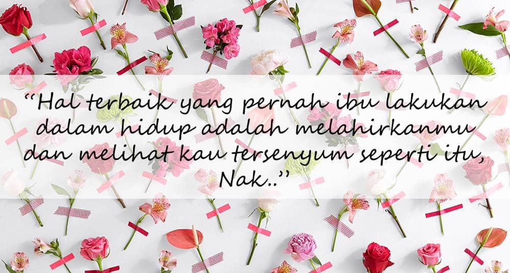 Saat kamu tersenyum saja, ibumu akan sangat senang. Bukan berati harus pura-pura senyum saat kamu punya masalah. Maksudnya, berceritalah dengan ibumu hal-hal yang sudah membuat hatimu berbunga-bunga, berbagilah kebahagiaanmu dengannya. Percayalah, ibumu akan merasakan hal yang sama. Jangan kurangi senyumanmu padanya sedikitpun. Berkatalah lembut yang menyenangkan hati ibumu. Sering-seringlah menggenggam tangannya selagi masih bisa. Entah besok atau lusa, ibumu masih bisa kau cium tangannya dan tersenyum padamu. Ayolah lekas peluk ibumu dan bisikkan di samping telinganya bahwa kamu amat menyayanginya.