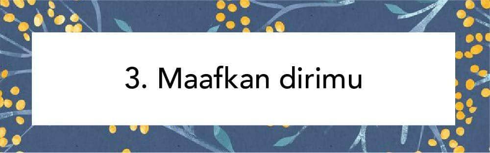 Saat semua telah terjadi pasti ada penyesalan-penyesalan yang kamu rasakan. Ketika kamu membiarkan ini terus berlanjut, kamu malah akan terperangkap dengan masa lalu. Kamu harus mulai memaafkan diri kamu sendiri, berusaha lapang dada walaupun berat. Seenggaknya kamu mulai melepas rantai-rantai yang pernah mengikat dirimu.