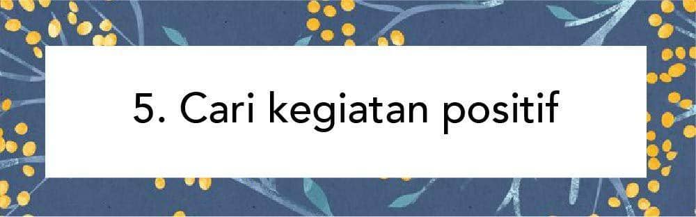 Mengalihkan hal negatif dengan hal yang positif adalah hal yang paling efektif. Cari apa yang bisa membuatmu senang dan bahagia. Lakukan hal yang membuatmu lepas. Lakukan hal yang membuatmu teralihkan dari kenangan-kenangan buruk yang pernah menimpamu.