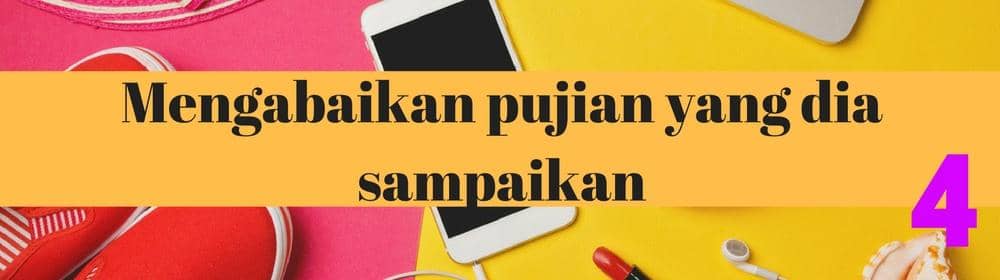 Mungkin kamu bermaksud untuk tidak ingin membanggakan diri atau menutupi rasa malu saat dia memujimu. Tapi alangkah baiknya jika kamu memberi tanggapan yang menyenangkan hatinya. Tidak semua cowok mau memuji cewek secara jujur, lho.