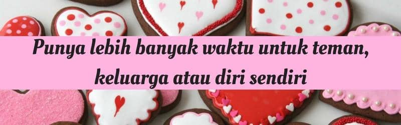 Saat sedang memiliki pasangan waktu kita lebih tercurahkan kepada pasangan. Kita kadang lupa bahwa kita juga memiliki keluarga, teman, atau bahkan diri sendiri untuk me time. Ketika single kita bebas pergi ke mana saja tanpa ada yang mengatur. Makan malam bersama keluarga menjadi momen yang tidak terlewatkan. Hangout bersama teman di kafe langganan juga menjadi kegiatan rutin yang kita lakukan. Tidak lupa juga jalan-jalan ke tempat baru sendirian juga menjadi alasan kamu rindu masa-masa single-mu.