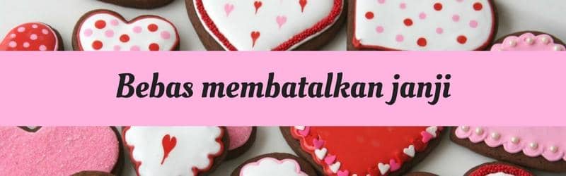 Bukan mengajarkanmu menjadi pribadi yang tidak bertanggung jawab. Membatalkan janji adalah hal yang biasa terjadi saat kita malas melakukan kegiatan di luar rumah. Manusia kadang tak bisa menolak rasa-rasa enggan atau lelah. Kita bisa dengan mudah membatalkan janji dengan teman yang mengajak pergi karena biasanya teman tidak memaksa. Namun, bila saat sedang memiliki pasangan, kita tidak mudah untuk membatalkan janji dengan pasangan. Ia pasti akan tetap menghampiri bila kamu tidak ingin pergi keluar rumah.
