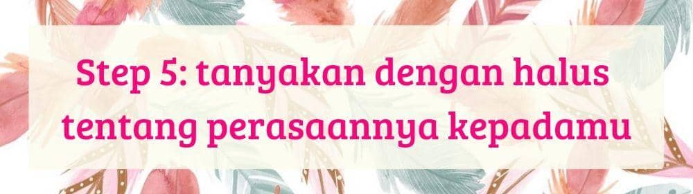 Yang terakhir, cobalah tanyakan secara halus tentang perasaannya kepadamu. Nggak ada salahnya kok jika kamu menanyakan hal ini secara langsung. Jika dia adalah tipe yang pemalu untuk mengakui perasaannya, cobalah jujur dan katakan bahwa kamu menyukainya. Jika kamu melakukannya dengan cara yang manis dan halus, mungkin dia akan mulai terbuka mengenai perasaannya. Selain itu, pastikan teman-temannya nggak ada di sekitar kalian saat kamu tanyakan hal ini, ya!