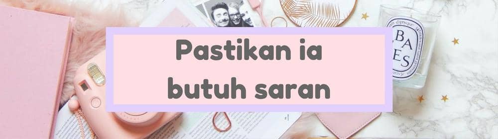Saran yang kamu ajukan dengan maksud baik, terkadang malah membuatnya merasa diremehkan, lho. Hal ini hanya akan membuatnya merasa lebih buruk karena ia tidak menerima dukungan seperti yang dibutuhkan. Dengan begitu, ia akan berpikir bahwa kamu tidak peduli dengan perasaannya, dan kamu tidak mencoba untuk memahaminya. Untuk itu, jangan sekali-sekali deh, gegabah dalam memberikan saran.