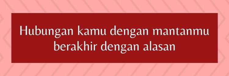Bertemu dengan mantan kekasih memang hal yang canggung, tetapi cobalah untuk tidak terlalu mengkhawatirkannya. Sementara kamu tidak bisa mengendalikan di mana, kapan, atau bagaimana kamu bertemu mereka. Tapi, kamu bisa mengendalikan bagaimana kamu bereaksi dan ekspresi yang kamu tunjukkan. Pastikan itu salah satu yang bisa kamu banggakan!