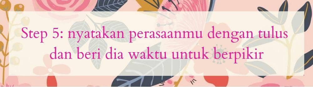 Mungkin dia akan sangat terkejut dengan pernyataanmu, jadi sebaiknya beri dia waktu untuk memikirkannya. Beri tahu dia bahwa kamu nggak perlu jawaban saat itu juga, kecuali jika dia memang sudah siap memberikan jawaban.