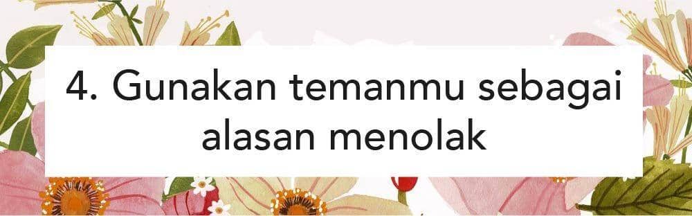 Seseorang yang sedang berusaha pendekatan, dia akan memanfaatkan momen kebersamaan dengan cara mengajak pergi atau bertemu. Nah, kalau kamu memang nggak mau menginginkannya, kamu bisa mencari alasan yang nggak membuatnya tersinggung. Kalau kamu nggak merasa enak untuk langsung menolak, kamu bisa menggunakan temanmu sebagai alasan. Misalnya, kamu harus pergi dengan temanmu atau menemani temanmu ke suatu tempat.