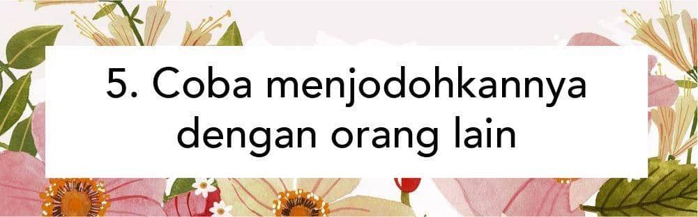 Salah satu cara lain untuk menunjukkan kalau kamu nggak tertarik dengannya adalah dengan cara menjodohkannya dengan orang lain. Dari situ kamu bisa memberikan tanda kalau kamu nggak tertarik dengannya. Buat perkataanmu sehalus mungkin agar nggak membuatnya tersinggung ya, Bela. Kamu harus menunjukkan sikap santai dan nggak peduli saat dia mulai jurus-jurus modusnya.